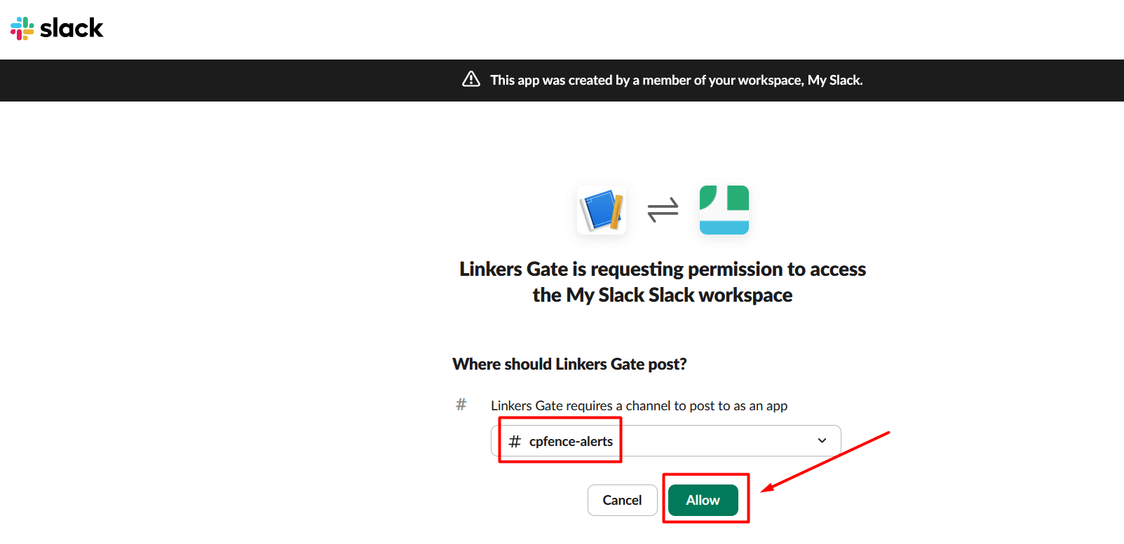 3. Choose your channel and click Allow.