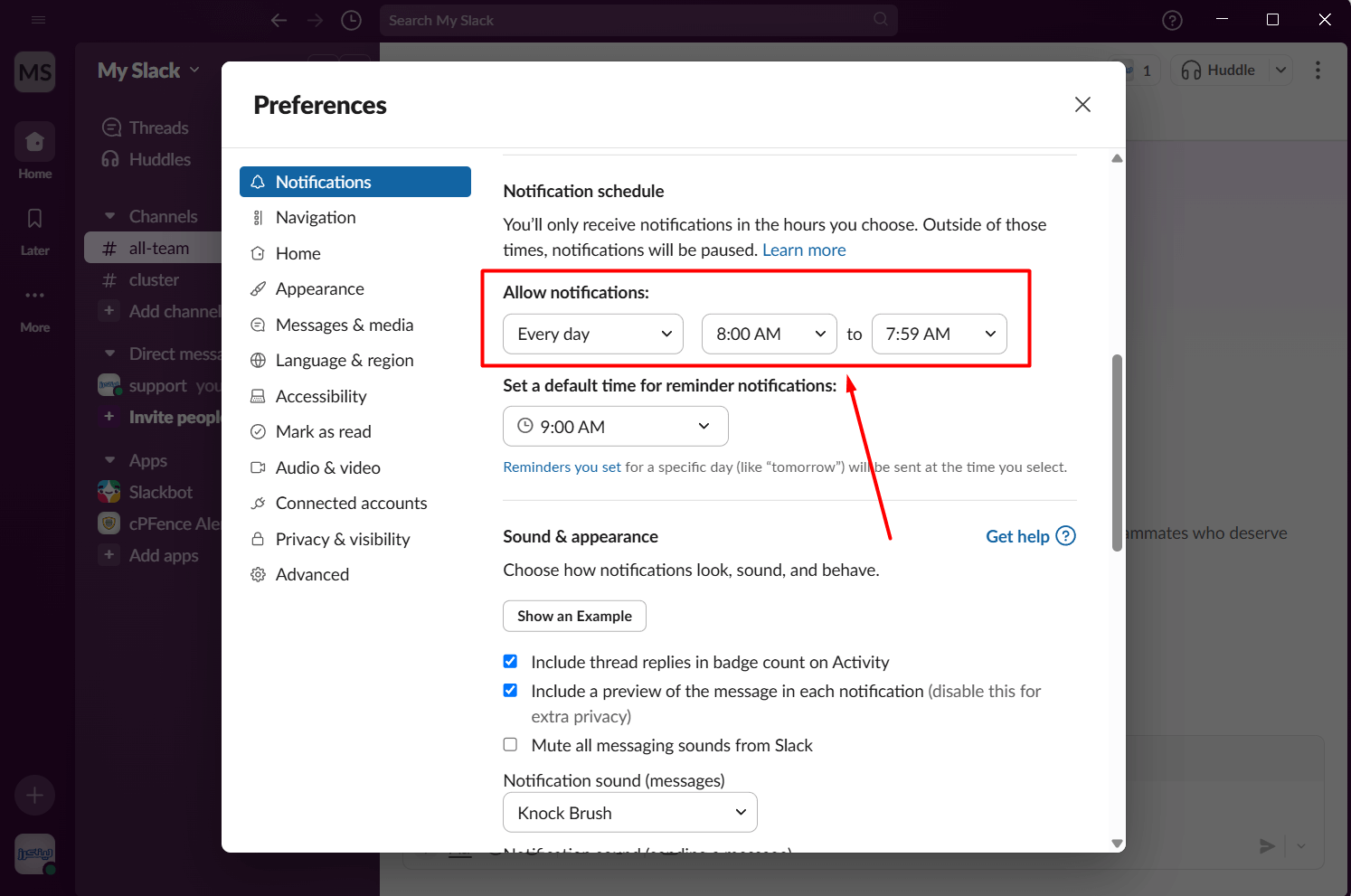 • Set your notification schedule and sound preferences.