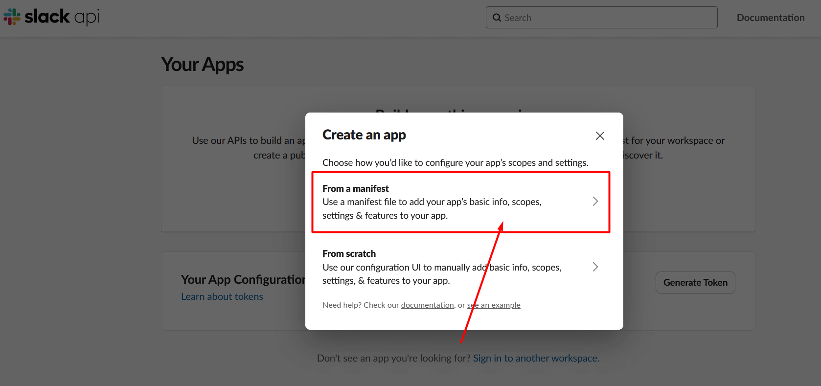 1. Visit https://api.slack.com/apps and log in.