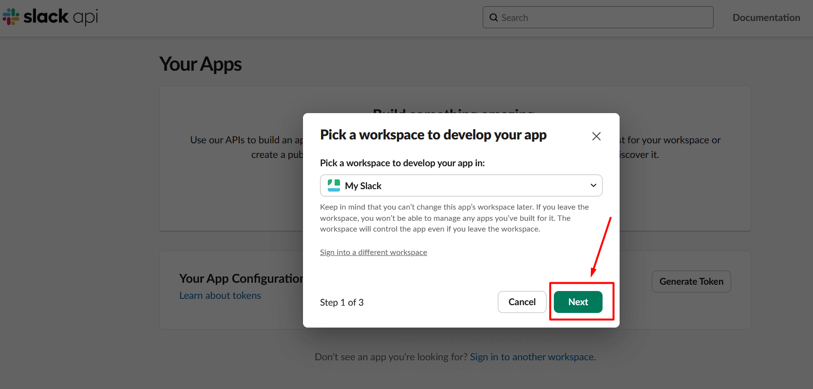 4. Pick your workspace and click Next.