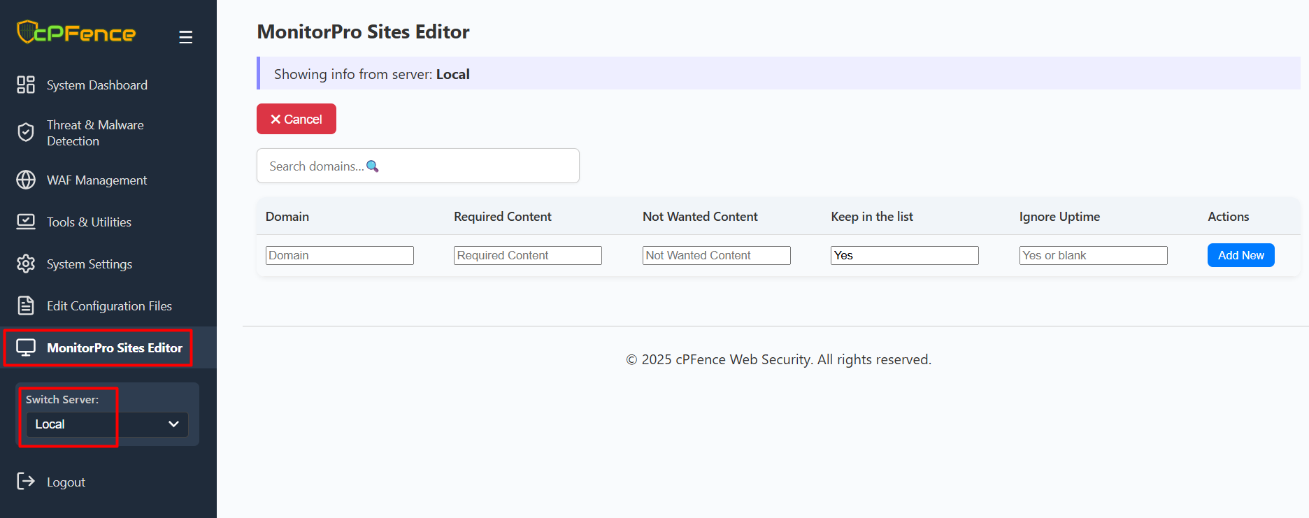 If you want MonitorPro to monitor additional domains or subdomains (even if they are not currently hosted on your cluster), you need to add them manually. You have two options: