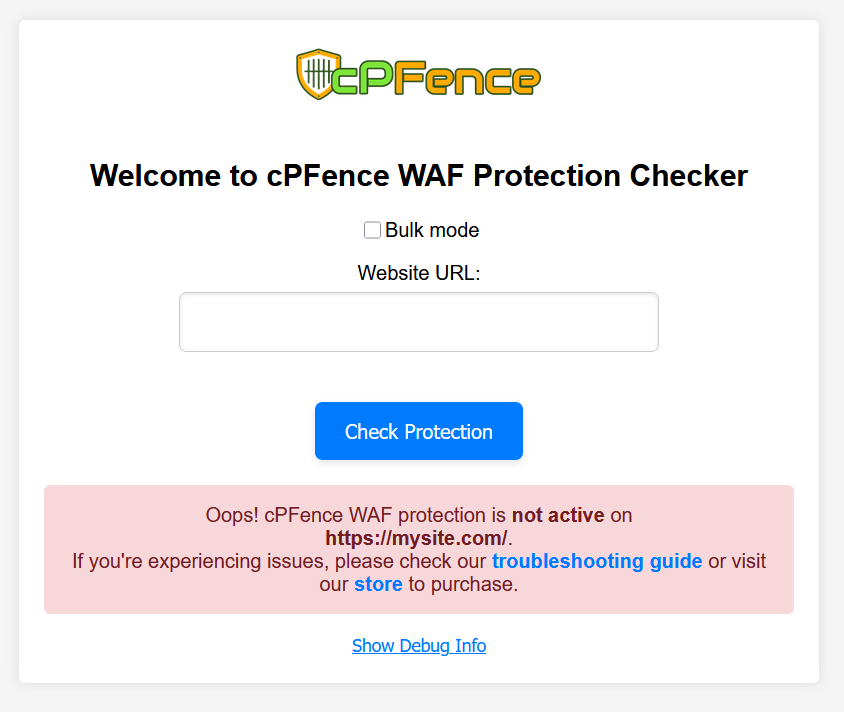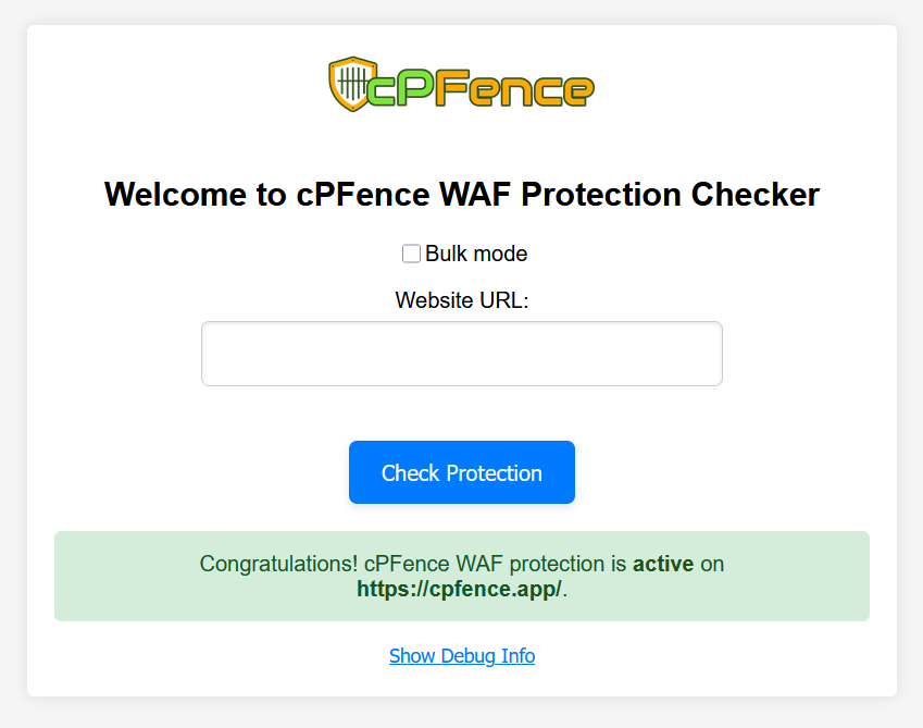 • The tool will display a message indicating whether the cPFence WAF is active or inactive on your site.