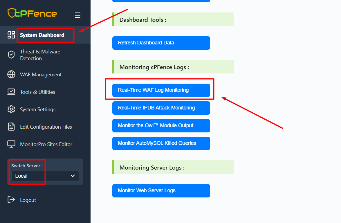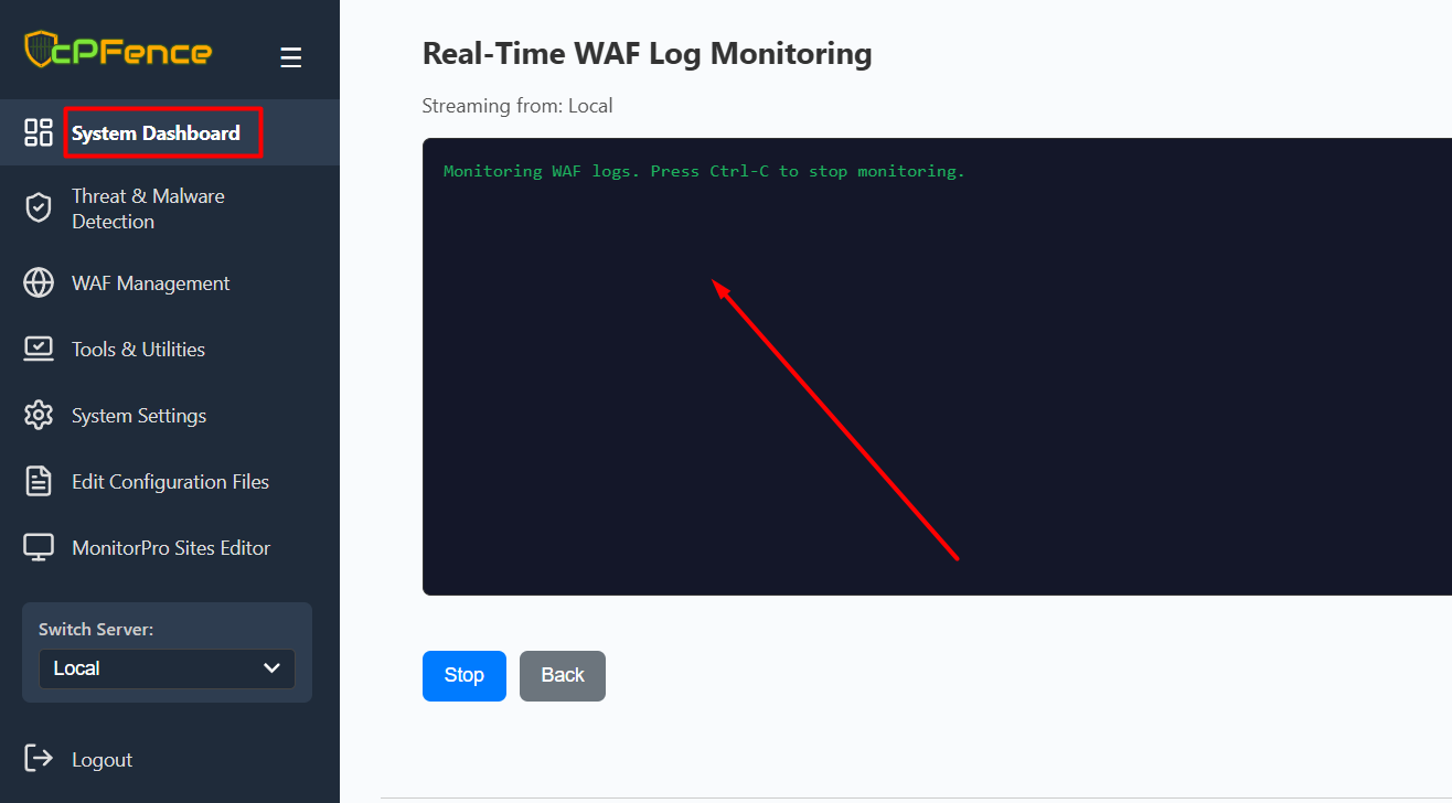 • Go to System DashboardReal-Time WAF Log Monitoring.