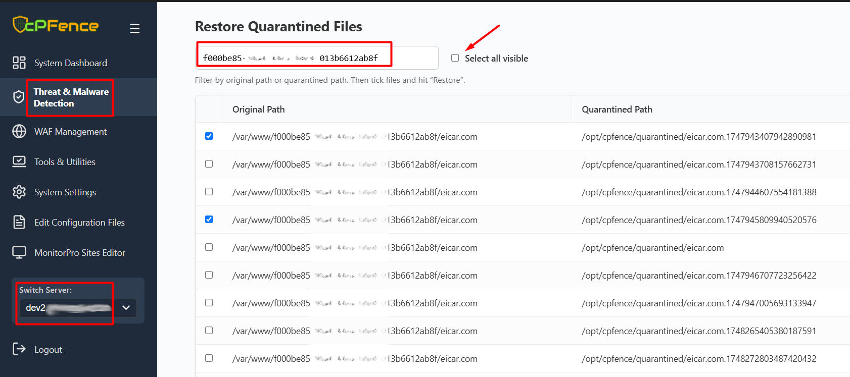 2. Navigate to Threat & Malware Detection → Restore Quarantined Files.